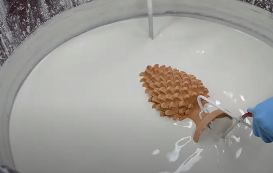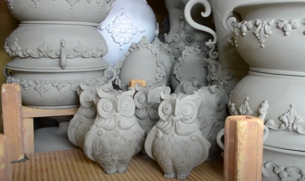 After the first firing there is enamelling, in which the products acquire a totally white color based on oxides and kaolin; thus ready to pass into the hands of decorators who will give color and style to the creations.