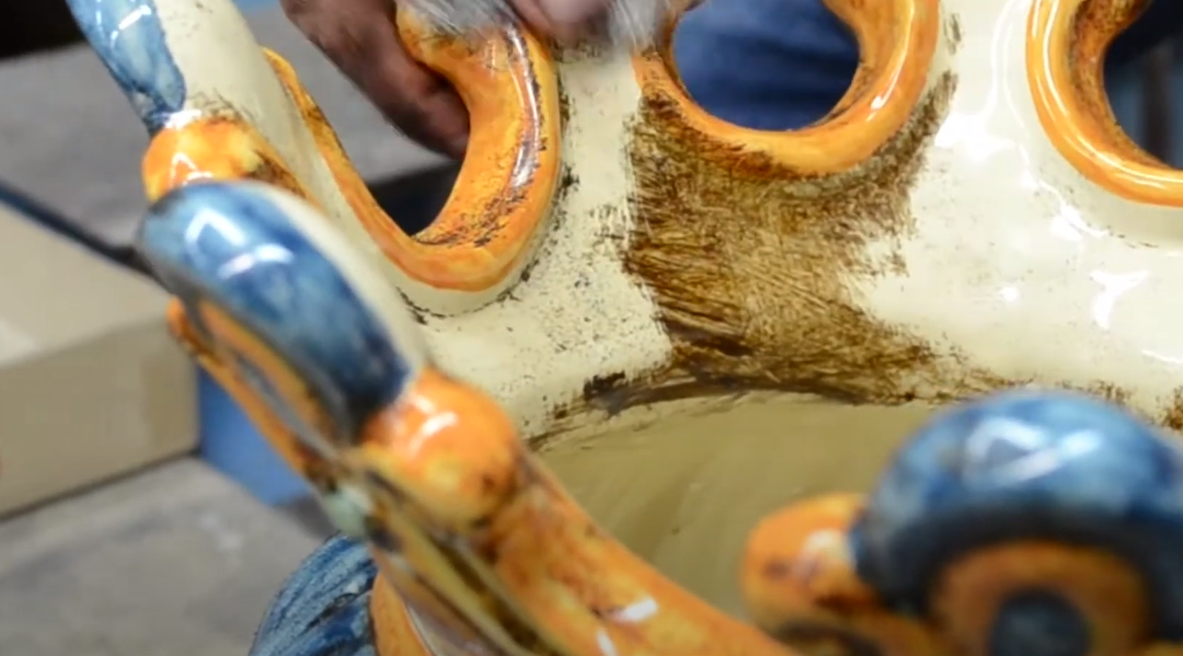 The manufacturing process that leads to the creation of our ceramics is divided into six important phases: Turning, Drying, first firing, Glazing, Decoration and Aging .